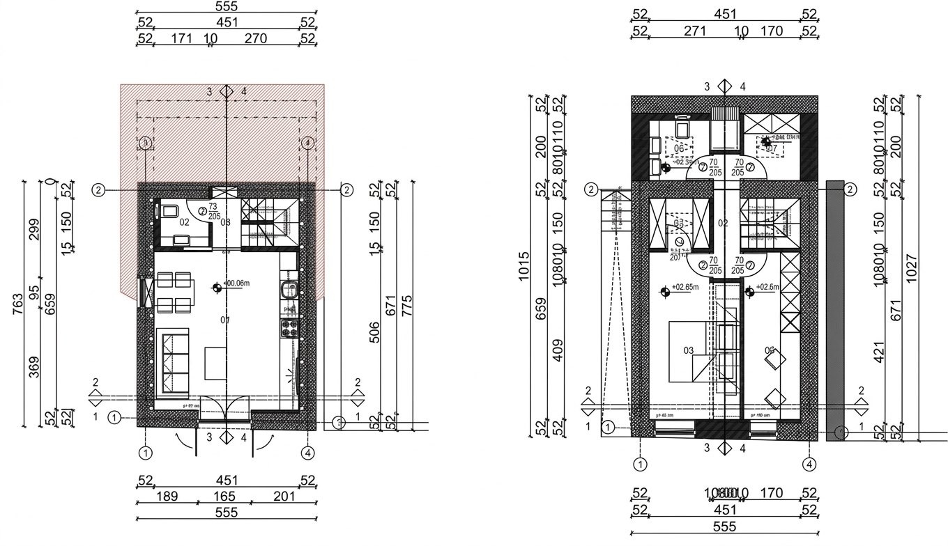 Existuje koncepční plán rekonstrukce. Půdorysy přízemí (29 m² netto) a patra (38 m² netto) jsou zobrazeny na našich fotografiích. Plocha pozemku: 154 m².